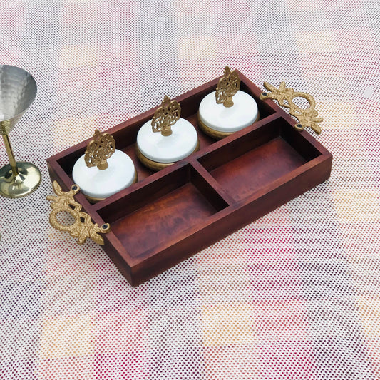 Humsafar Wooden Tray | DryFruit Tray | 1(One) Wooden Serving Tray and 3 Jar Inluded
