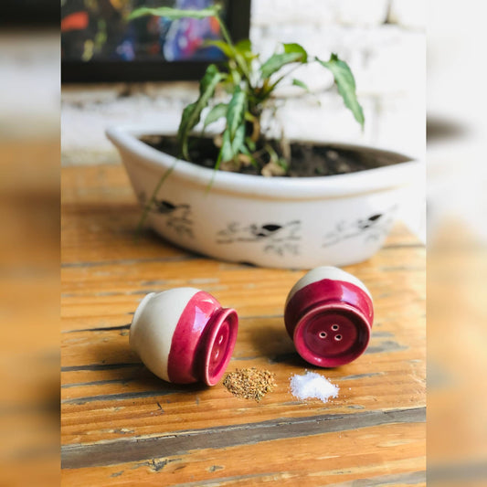 Ceramic Salt and Pepper Shakers Set | Salt and Pepper Set for Dining Table | Set of 2 - 1 Salt and 1 pepper Dispenser | Colour:- Pink With White